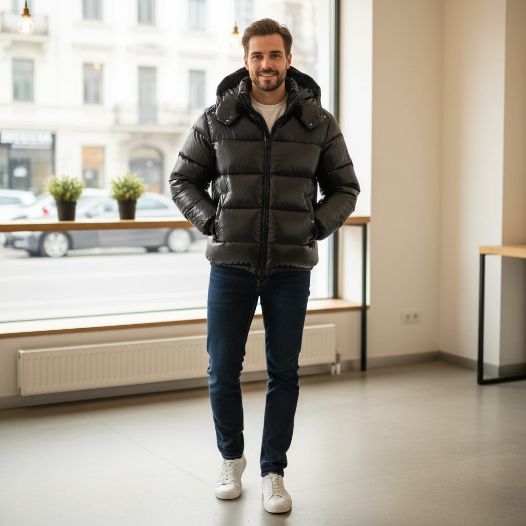 This insulated puffer jacket delivers dependable warmth with a modern, urban edge. Its padded structure provides exceptional comfort during cold days, while the hood offers added protection against winter winds. Designed for everyday wear, it brings together practicality and style in a sleek, contemporary silhouette. Perfect for commuting, outdoor activities, or casual winter outings, this jacket keeps you warm, comfortable, and effortlessly confident throughout the season.