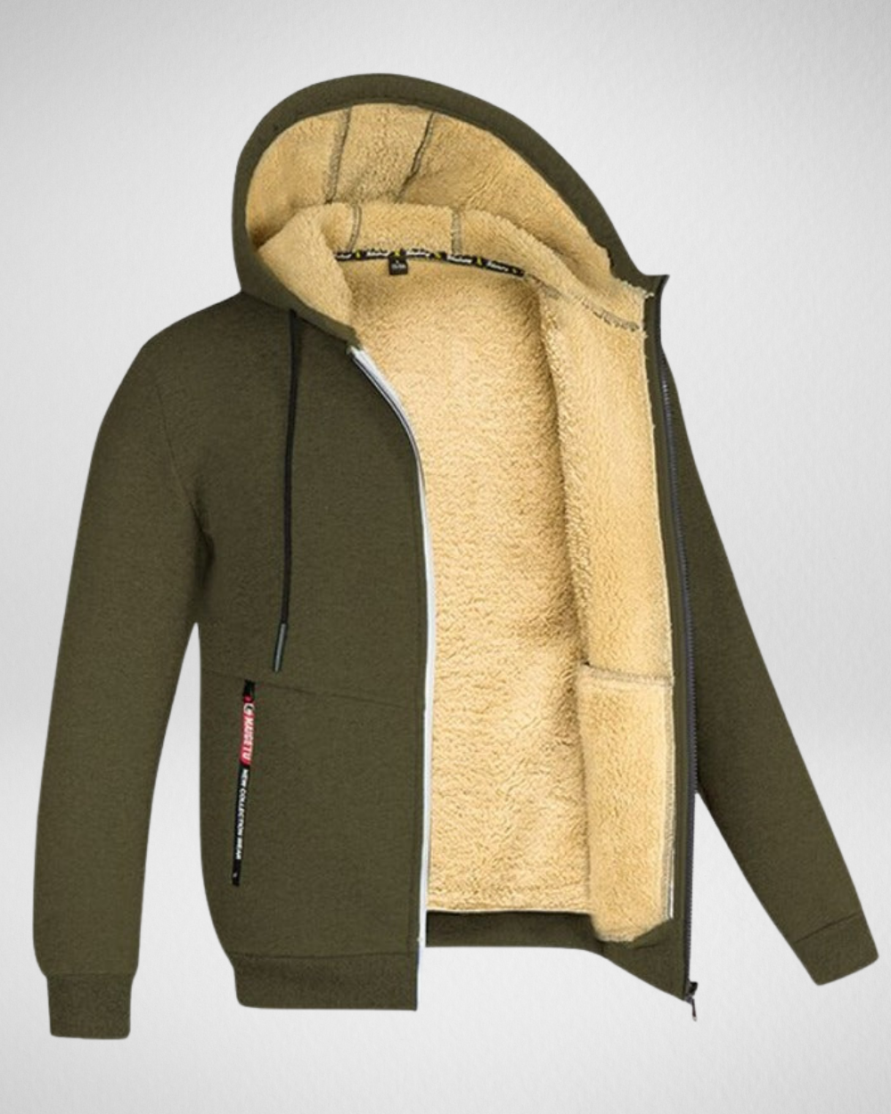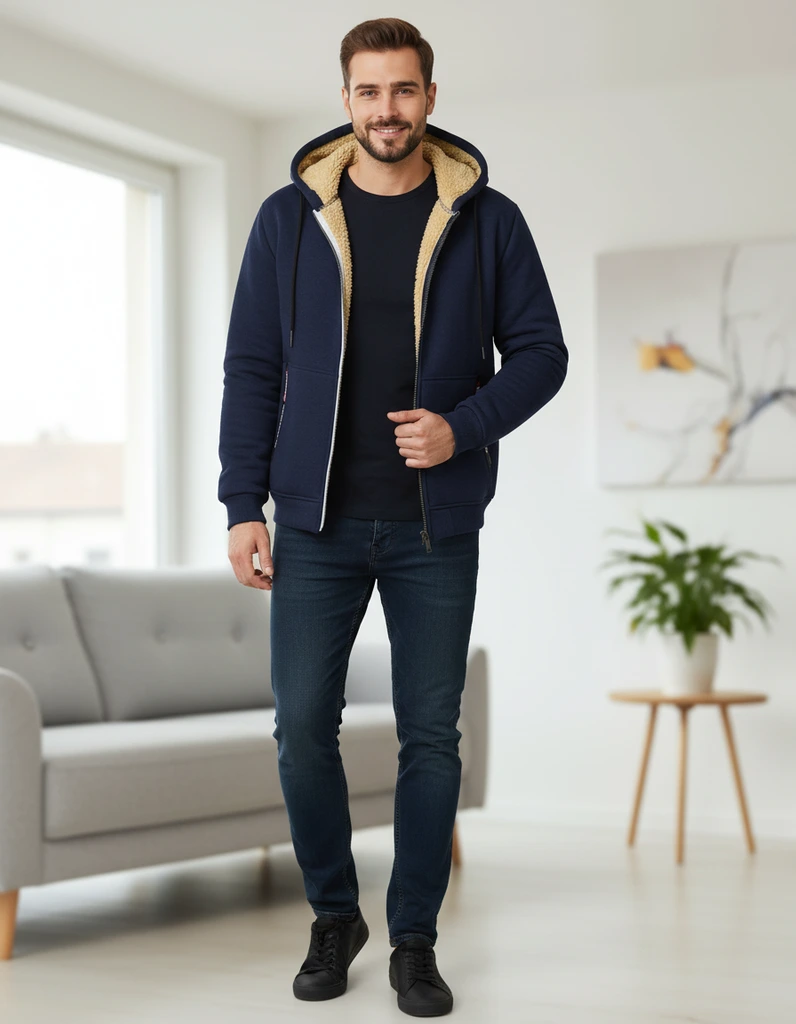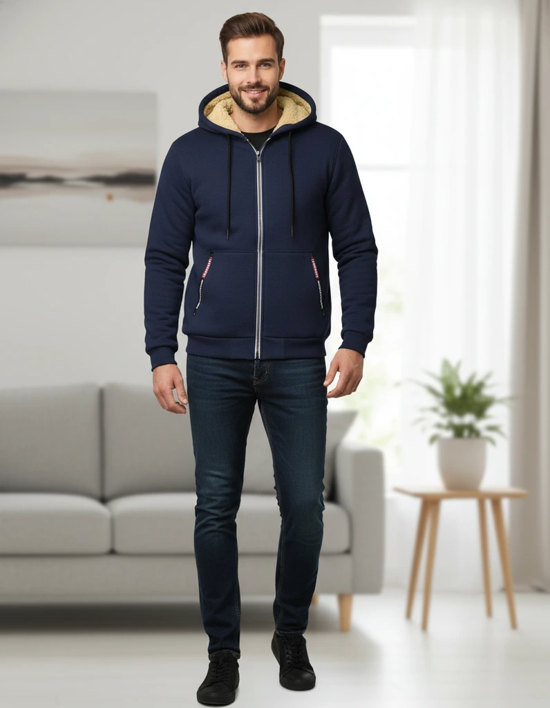 Stay warm and comfortable through colder days with this plush-lined winter hoodie. The soft interior delivers a cosy, insulating feel, while the structured outer design keeps your look sharp and modern. A practical full-zip closure and roomy hood offer extra warmth, making it ideal for daily wear, travel, workouts, or relaxed weekends. A perfect blend of comfort and functionality for men who want effortless winter protection.