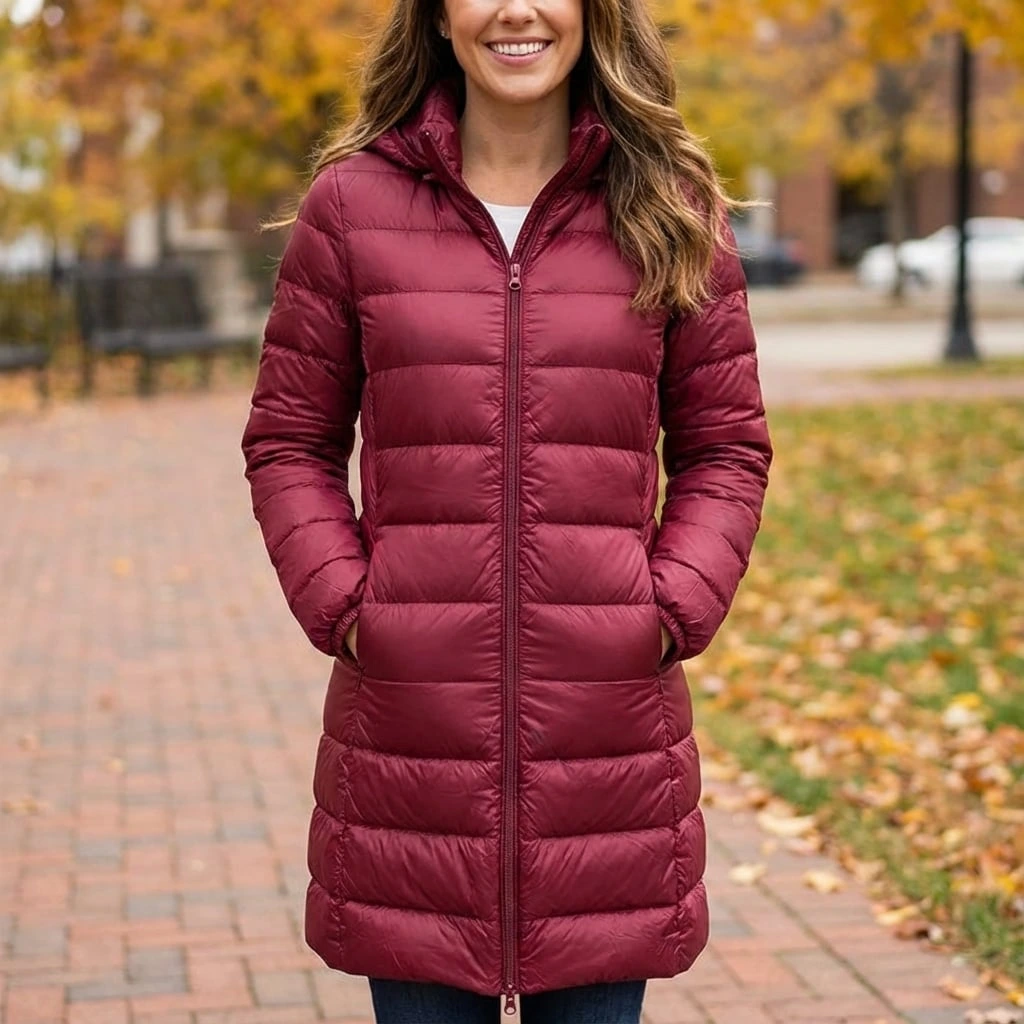Designed for everyday comfort with added coverage, this long quilted jacket offers a sleek silhouette while keeping warmth evenly distributed. The extended length creates a flattering, streamlined look that works effortlessly for daily wear, travel, or cooler outdoor moments. A practical yet polished piece that balances function and modern style.
