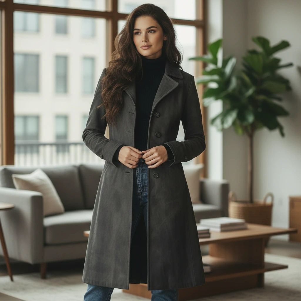 Women’s Tailored Long Button-Front Winter Coat