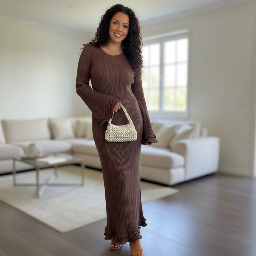Ribbed Long Sleeve Maxi Dress